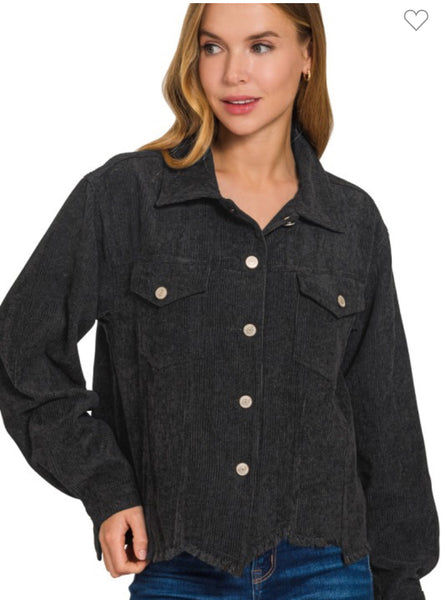 Distressed Corduroy Frayed Hem Cropped Jacket