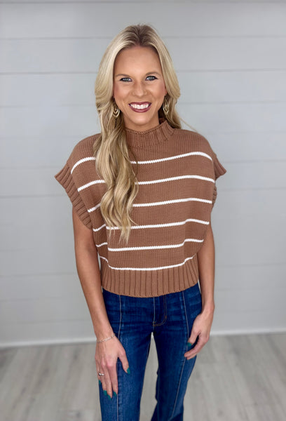 Striped Cropped Mock Neck Sweater